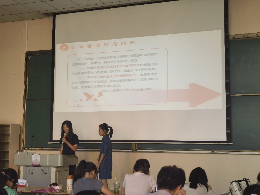 除《中国共产党红军第四军第九次代表大会决议案》之外,古田会议期间,毛泽东同志还撰写了许多著作。本二支部宣讲员谢艾书、阎芃颖两位同学就《星星之火,可以燎原》等著作一同展开对照分析,探讨其对革命实践的指导作用。