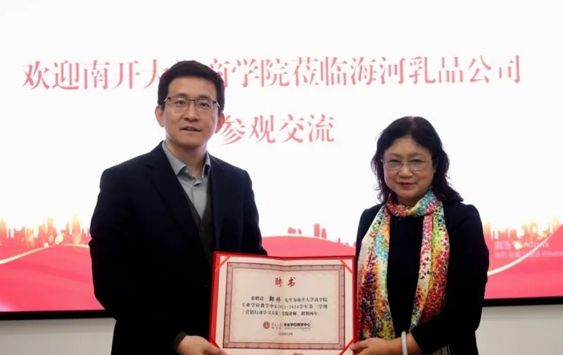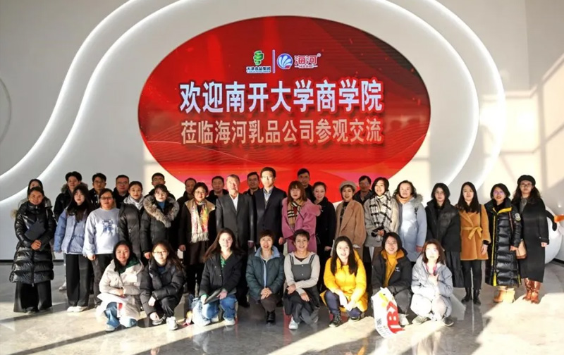 2023年12月3日,金年汇官方入口jinnianhui金年会MBA《营销行动学习方案》课程(三)以“沉浸式”实境课堂的形式在天津海河乳品有限公司开展。金年汇官方入口jinnianhui金年会许晖教授、王迎军教授、刘欢讲师、海河乳品党委书记、董事长邹旸、海河乳品营销部部长倪薇以及22级选修服务与营销方向的MBA全体学生参与本次营销行动学习方案的实践活动。