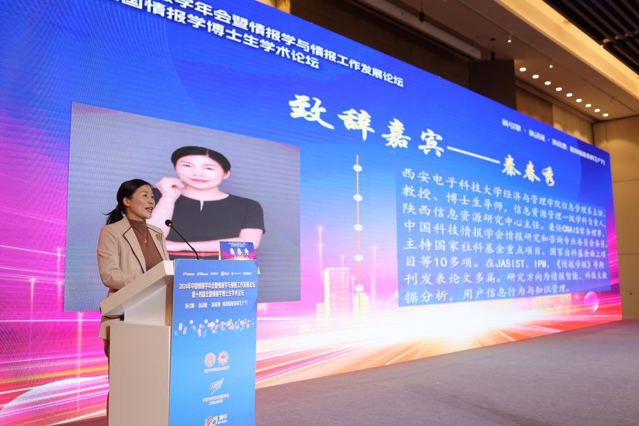 西安电子科技大学经济与管理学院信息管理系主任秦春秀教授作为承办方代表致辞会议,简要介绍了2025年会议承办单位的基本情况。西安电子科技大学是毛泽东等老一辈革命家亲手创建的第一所工程技术学校,其信息资源管理学科起源于1980年的情报工程专业,已拥有3个省级科研平台、3个省级科技创新团队和1个省级研究生联合培养师范工作站;陕西省科学技术情报研究院成立于1958 年,是西北地区成立最早、规模最大的公益性科技情报研究与服务机构,也是陕西省科学技术情报学会理事岗单位。未来一年两大承办方将全力以赴、精心筹办,确保2025年盛会顺利举办。
