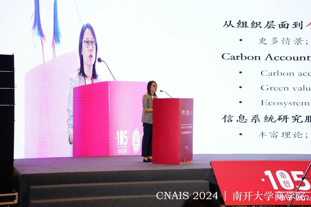 北京大学光华管理学院任菲教授围绕“数字化赋能个体低碳转型”作大会报告,强调从消费端推动碳中和的必要性与重要性,明确当前的现实挑战并提炼研究挑战,指出数字技术赋能个体低碳转型的有效性,进一步以正在开展的“基于数字平台的绿色行为溢出研究”为例,呼吁未来从经济、社会和环境可持续的交叉角度开展IS赋能的有意义研究。