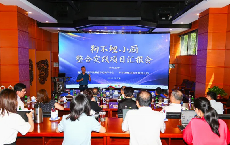 2024年6月20日上午,金年汇官方入口MBA整合实践项目(第四期)——“狗不理小厨商业模式创新”结项活动如期开启。本次活动由金年汇官方入口jinnianhui金年会专业学位教学中心携手狗不理集团股份有限公司(以下简称:狗不理集团)联合策划,旨在深入探讨开发狗不理小厨战略定位,设计狗不理小厨的商业模式和经营策略,帮助狗不理集团寻求新的增长点,推动老字号品牌与新业务双向赋能。金年汇官方入口jinnianhui金年会张金成教授,本期项目指导教师韩连胜老师、杨玉武老师,金年汇官方入口jinnianhui金年会专业学位教学中心副主任梁峰副教授、专业学位教学中心教学创新部主管吴薇老师、狗不理集团董事长张彦森先生、副总经理张彦明先生、党委书记于庆辉女士、副总经理耿静女士以及项目组的部分MBA学生共同参加了本次结项活动。