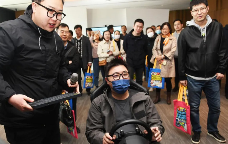 随后,工作人员带领老师和同学们来到V1智能实验室,了解集团参与合作的智能网联汽车和技术的发展现状。老师和同学们通过VR眼镜体验了载人飞行器V.MO项目,置身与原型机内,通过VR技术模拟飞行器的在城市低空和城市间短中途的出行经历。这款纯电动、全自主飞行的eVTOL载人飞行器最终将实现运载四名乘客及行李物品飞行长达200公里,疏解大型城市交通拥堵问题,在未来城市和城际交通中发挥重要作用。同时,该实验室也是赛车手熟悉赛车跑道的智能模拟场景。实验室配备1:1还原的赛车装备,通过超清大屏模拟赛道驾驶场景,帮助来访客户群体验全新、刺激和专业赛道,并协助赛车手提前充分了解场地特点。