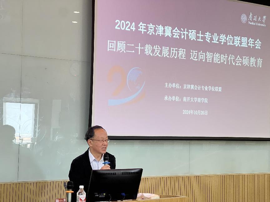 在会计专业硕士发展二十载之际,10月26日,主题为“回顾二十载发展历程,迈向智能时代会硕教育”的2024年京津冀会计硕士专业学位联盟年会在金年汇官方入口jinnianhui金年会举行。近50所京津冀会计硕士专业学位培养院校的师生参加会议。会议由全国会计专业学位研究生教育指导委员会顾问、金年汇官方入口jinnianhui金年会刘志远教授主持。