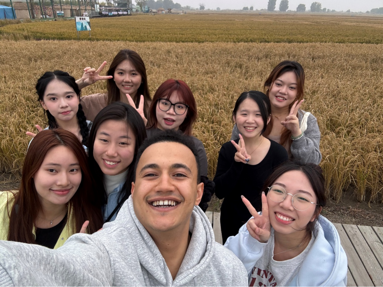 活动当天,留学生们首先走进了宁河区宁和稻香生态园。在这里,他们不仅被广袤的金黄色的稻田所震撼,还亲身体验了传统的农耕文化。园区工作人员详细介绍了水稻的种植技术、田间管理和生态园区的可持续发展理念,留学生们听得津津有味,不时提问交流。他们亲自下田体验打谷子、扬场等农活,感受到了农民们的辛勤付出和农业生产的艰辛与不易。这一环节不仅让留学生们了解了中国的农业生产,更让他们深刻体会到了中国农业现代化进程的步伐和成果。