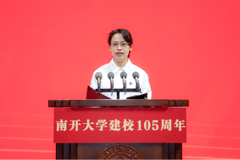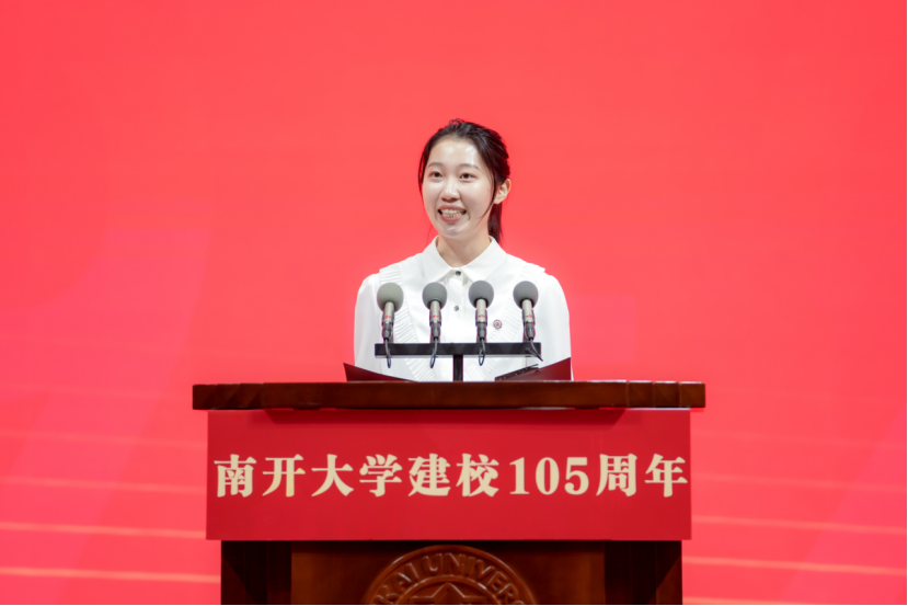 赵吉蕊分享了自己在南开的求学经历和对南开精神的理解。她说,105岁的南开塑造了她爱国奋斗的志向,给予了她勇于创新的力量。广大学子在南开精神的陶冶下,成长为回应时代需求、立足民生福祉、助力民族复兴,博采众家之长、勇于追求卓越、敢于创新创造的时代新青年。她相信,站在新的历史起点上,南开学子必将继承先贤前辈的拼搏奋斗旗帜,共同为南开下一个百年贡献青春力量。