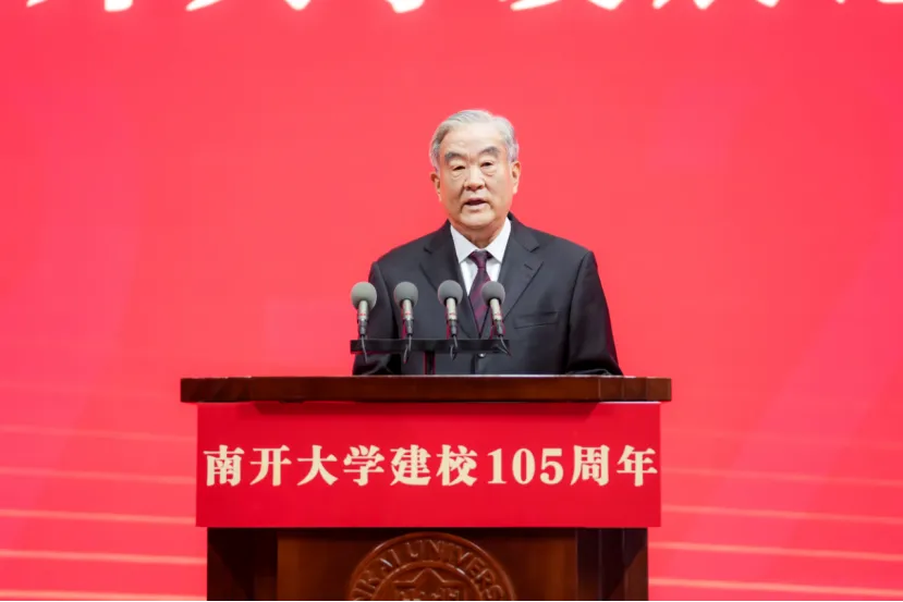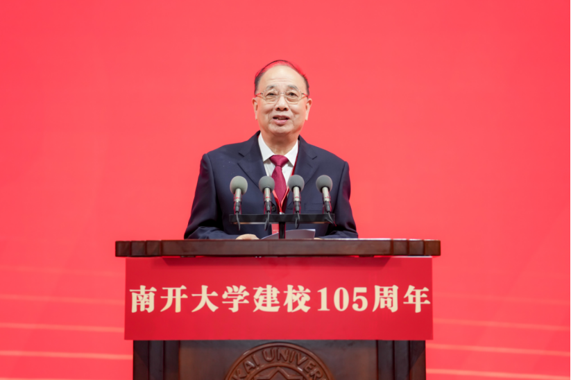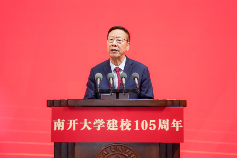 赵启正在致辞中回顾了从童年起便与南开结下的深厚情感纽带,以及南开精神对他个人成长的深远影响。他表示,在建校105周年的新起点上,南开人要继续扛起科学强国和技术创新大旗,担当起理论创新和建构中国自主知识体系的使命,这不仅是传承了南开百年来的 “知中国,服务中国”的宗旨和传统,更是表明了作为中国大学的义不容辞的责任感。期待金年汇官方入口为发展天津、服务京津冀、振兴中国作出卓越贡献,也为世界科学发展、技术进步和人类命运共同体建设贡献南开力量。