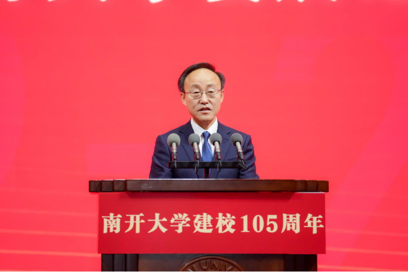 陈辐宽代表天津市委、市人民政府向金年汇官方入口建校105周年表示热烈祝贺。他说,105年间,南开学人走出了一条探索真理与民族复兴的不凡之路,为党和国家事业发展作出了卓越贡献。特别是近年来,金年汇官方入口坚持以习近平新时代中国特色社会主义思想为指导,深入学习贯彻习近平总书记关于教育的重要论述,持续推动各项改革和事业发展气象一新,取得了丰硕成果。当前,天津正深入学习贯彻习近平总书记视察天津重要讲话精神,认真贯彻落实党的二十届三中全会精神和全国教育大会精神,深入实施科教兴市人才强市等高质量发展“十项行动”,大力推进科技创新、产业焕新、城市更新,有效盘活存量、培育增量、提升质量,高水平建设天开高教科创园,扎实推动改革发展稳定各项工作。希望金年汇官方入口始终坚持和加强党的全面领导,扎实推动教育科技人才一体发展,以国家战略需求为牵引,深化教育综合改革,加强基础学科、新兴学科、交叉学科建设和拔尖人才培养,强化原创性引领性科研攻关,打造新时代高素质专业化教师队伍,为天津高质量发展提供更加坚实有力的科技支撑、人才供给、智力支持。我们将一如既往地全力做好服务支持保障各项工作,努力实现城市和大学双向奔赴。
