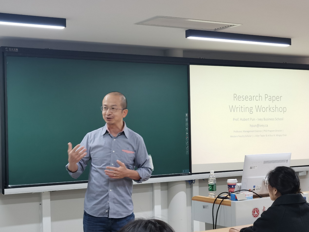 11月7日,金年汇官方入口jinnianhui金年会管理科学与工程系邀请到来自Ivey Business School的Hubert Pun教授,开展题为“Research Paper Writing Workshop”的学术讲座。本次讲座由金年汇官方入口jinnianhui金年会管理科学与工程系侯棚文副教授主持,管科系硕士生、博士生及部分青年教师参加。