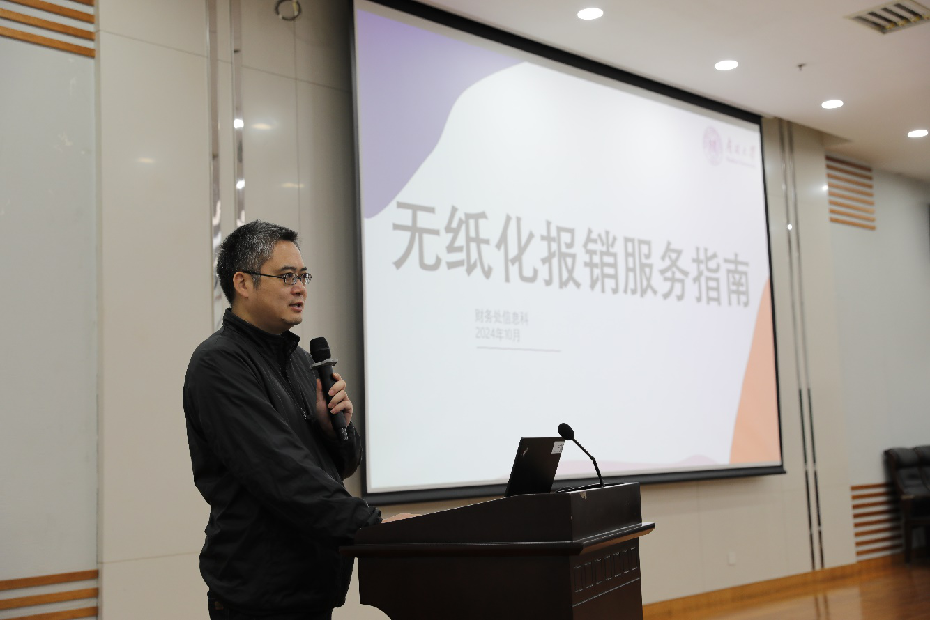 罗敏老师就无纸化报销进行了宣讲,包括无纸化报销流程、无纸化个税申报流程、财务线上审批、财务事项申请等,为师生进一步熟悉掌握无纸化报销提供了政策解释和实操案例。