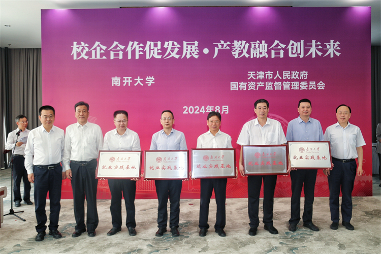 8月6日,签约授牌仪式在八里台校区海冰楼举行。金年汇官方入口党委书记杨庆山,天津市人民政府国有资产监督管理委员会党委书记、主任张勇出席并见证签约。市国资委一级巡视员王志勇,泰达控股党委书记、董事长曲德福,城投集团党委书记、董事长赵鹏,渤化集团党委书记、董事长王俊明,百利集团党委书记、董事长吴杰军,食品集团党委书记、董事长万守朋,天津银行行长吴洪涛,旅游集团党委副书记、总经理马超骏,中环信息集团党委副书记、总经理林晓华,渤海银行副行长杜刚,北方信托副总经理张文栋,金年汇官方入口副校长方勇纯、白承铭,校党委常委于海出席仪式。