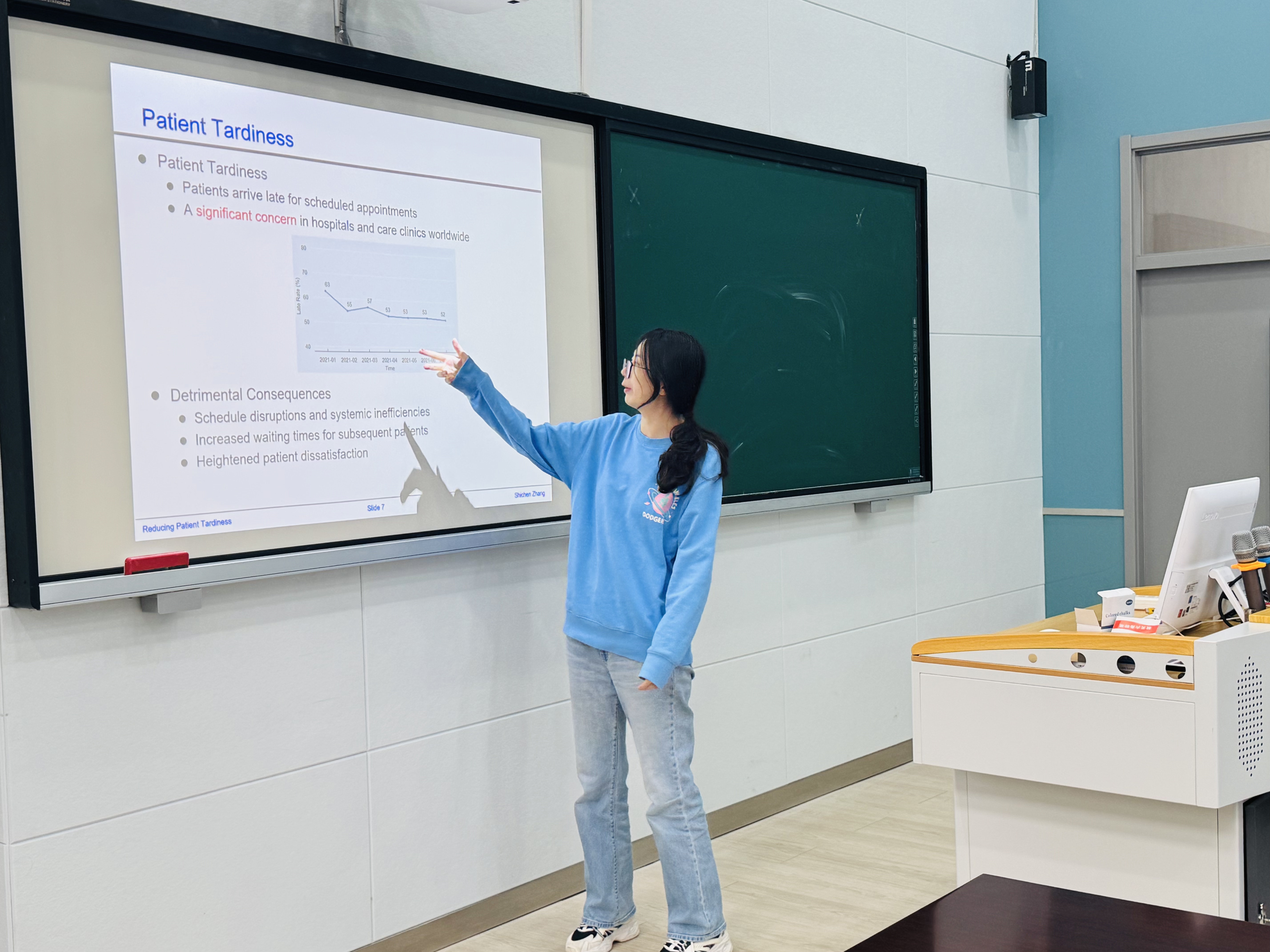 管理科学与工程系张世晨老师作为主讲人作了题为“Reducing Patient Tardiness: From Experiment to Implementation”的学术报告。在本次论坛中,张老师首先介绍了患者迟到这一问题在医院和医疗机构中普遍存在的现象。患者的迟到不仅会导致医院的排队管理效率低下,还会增加后续患者的等待时间,进而影响患者的满意度。因此,如何有效减少患者的迟到行为成为了医疗管理中的一个重要课题。张老师指出,患者迟到的现象在全球范围内都存在,给医院的运营带来了显著的挑战。患者的迟到行为会导致预约时间的混乱,影响医疗资源的合理配置,进而导致患者的就医体验下降。为了解决这一问题,张老师和他的团队提出了一种新的排队管理策略——“最后一名惩罚”。“最后一名惩罚”策略的核心在于对迟到患者进行惩罚,具体做法是将迟到的患者重新排到队伍的最后位置。这一策略的实施旨在通过让患者意识到迟到的后果,从而提高他们按时到达的意愿。此外,张老师还提到,结合时间推荐的策略,即在患者预约时建议他们提前到达的时间,也有助于减少迟到现象。张老师详细介绍了他们的研究方法,采用了随机实地实验的方式来验证“最后一名惩罚”策略的有效性。研究选择了一家成立于1958年的公立医院作为实验场所,该医院拥有近600张病床和300多名医生,每年接待超过一百万名患者。