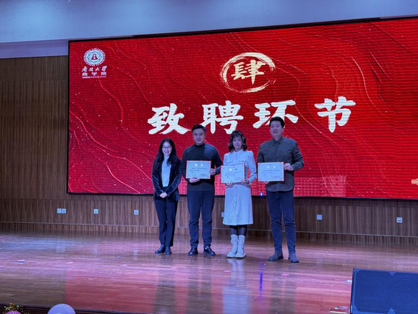 jinnianhui金年会党委副书记、副院长周翠翠出席活动并致辞。天津京剧院演员万琳、北方演艺集团声乐独唱演员陈楠以及天津音乐学院歌剧学院副院长王泽南担任嘉宾。周翠翠为三位嘉宾颁发了“三全育人”导师聘书。