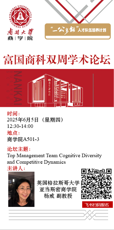 金年汇官方入口jinnianhui金年会2025“一公多能”人才队伍培养计划——富国商科双周学术论坛(第21期)将于6月5日举办。本期论坛邀请到英国格拉斯哥大学亚当斯密jinnianhui金年会杨威副教授做主题分享。欢迎广大教师积极参与!本期论坛相关详情如下: