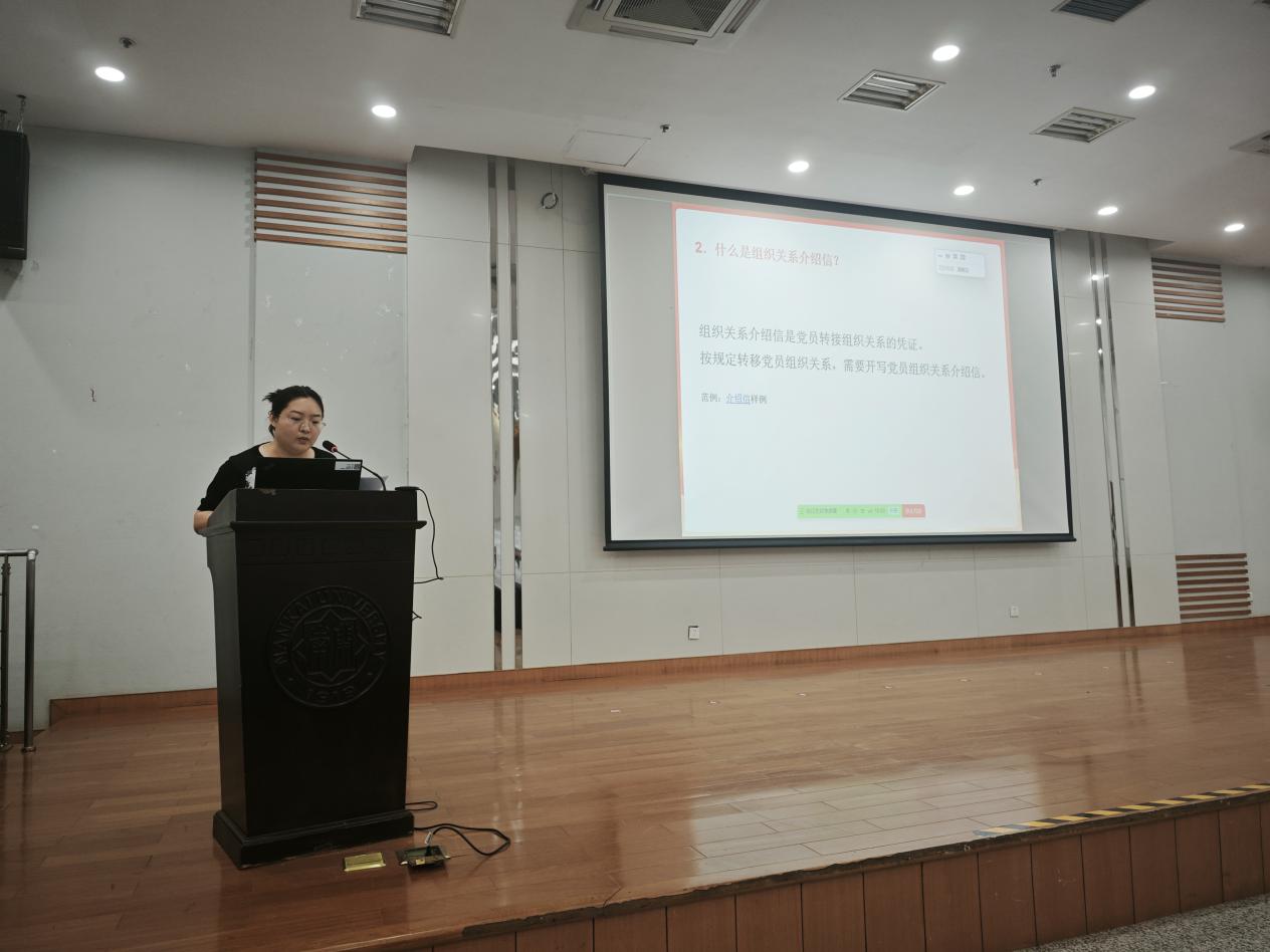 党委组织员王媛媛、孙晓靓两位老师就毕业生党员组织关系转接工作开展了详细培训。介绍了组织关系转接的重要性和具体流程,强调了其中的关键时间节点和注意事项,提醒毕业生党员务必高度重视,避免因疏忽导致组织关系脱节,保障党员组织关系转接工作的顺利进行。