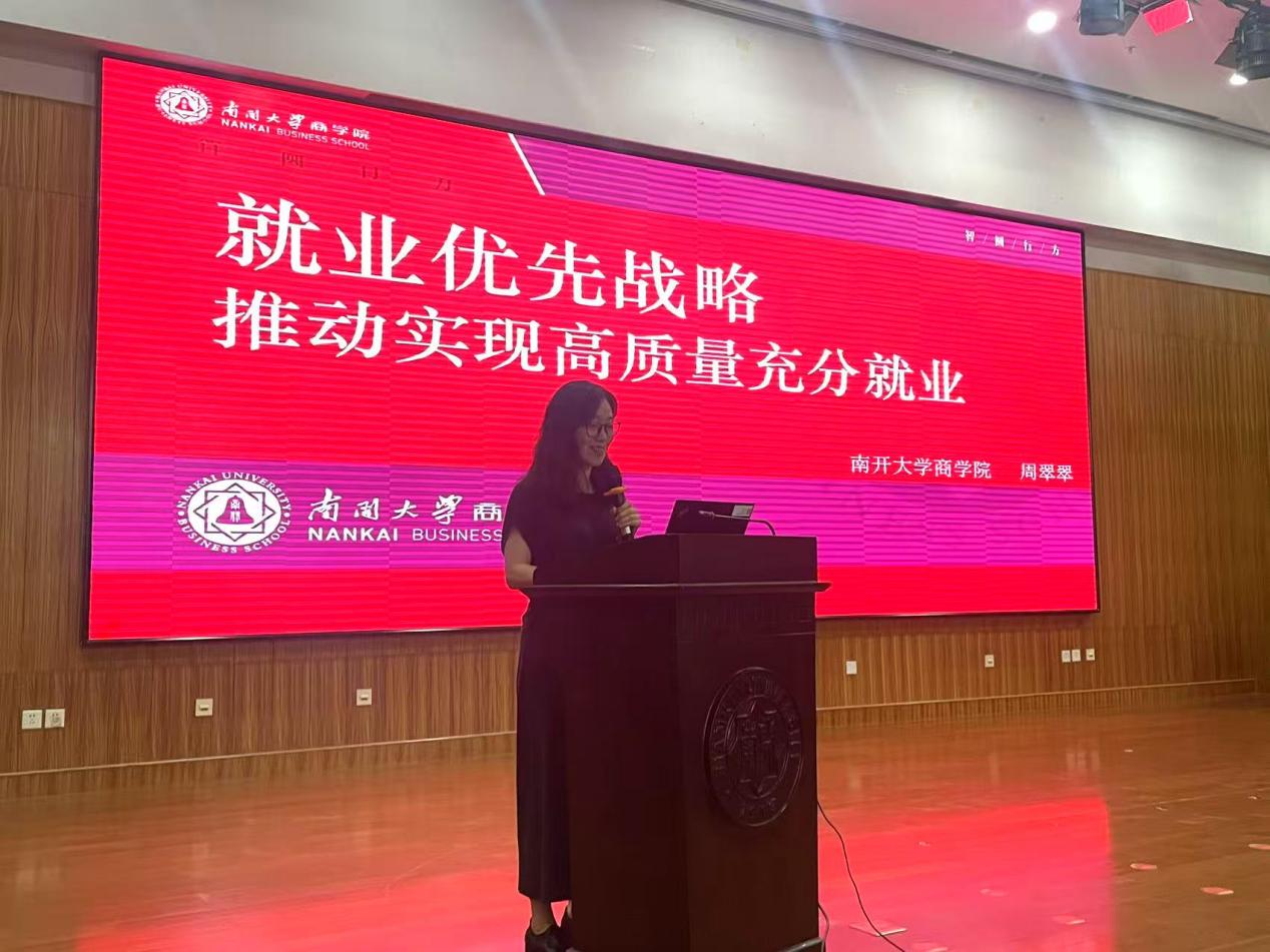 jinnianhui金年会党委副书记、副院长周翠翠详细介绍了近三届毕业生的就业率、就业结构和就业去向。她强调,未来学院将持续聚焦高质量发展目标,以AI 赋能就业,进一步整合校友资源与行业资源,推动精准就业服务走深走实,助力更多南开学子在服务国家战略中实现自身价值。
