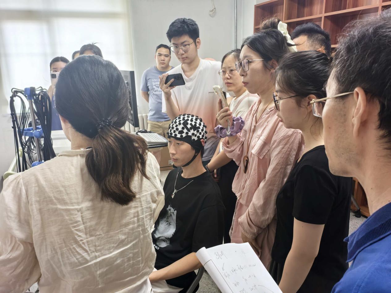 7月30日上午,培训重心转向实验操作环节。参训师生在培训工程师指导下亲自操作近红外数据采集设备及定位仪,模拟典型的行为实验场景,对志愿者被试进行数据采集与脑区定位。这一环节有效强化了参训师生对设备原理、操作流程的理解,特别强调了在真实研究情境下的应用要点,为师生在领导力神经机制、管理行为决策与博弈、消费者神经科学、神经营销、信息行为神经机制等学院核心研究方向设计并实施高质量实验提供了直接支持。