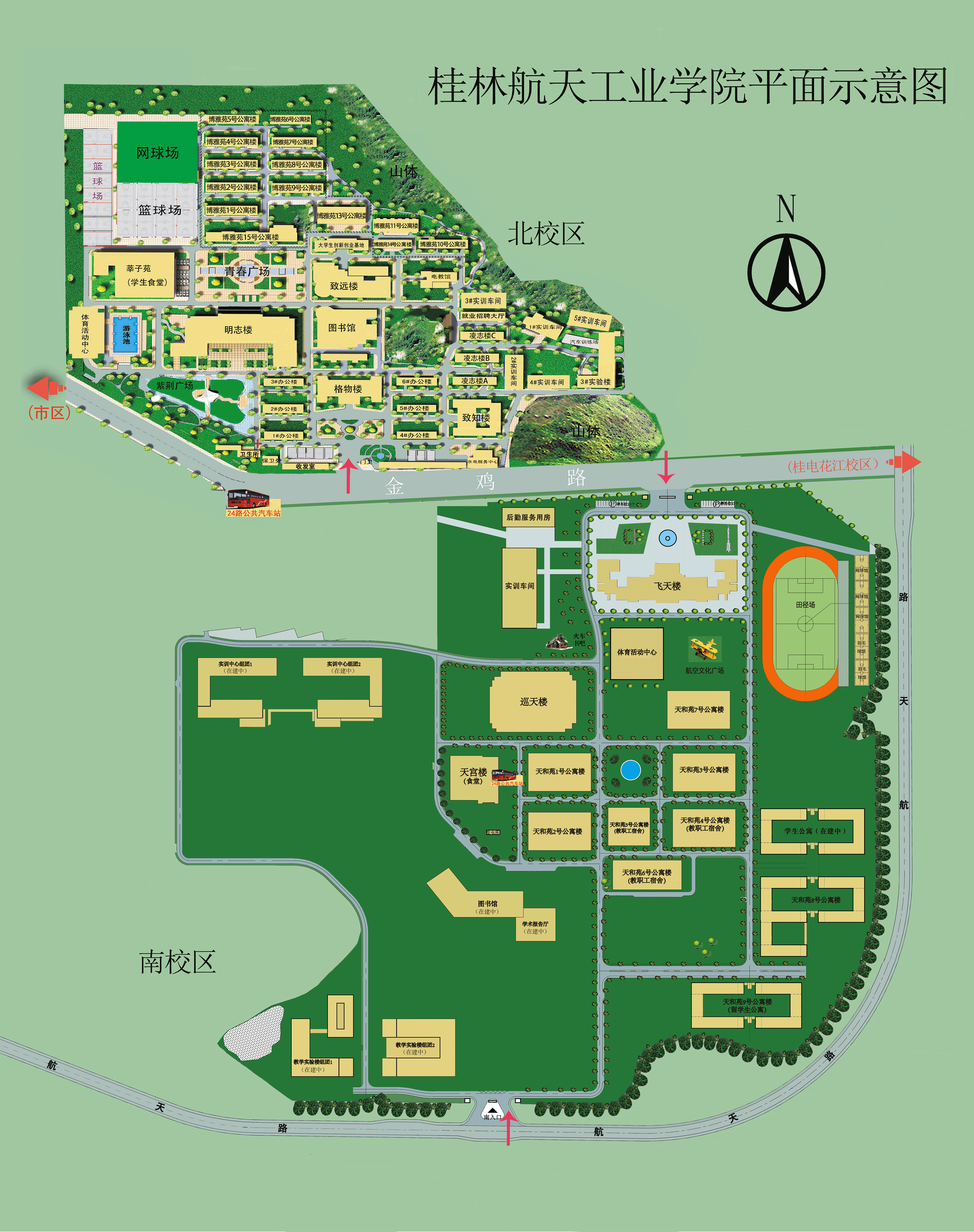 1.航天工业学院南校区 2.航天工业学院北校区 3.靖江王陵 4.林校 5.卦子山 6.茶叶研究所 7.电子科技大学 8.金鸡路口9.电子科大西区10.花园村口11.花园村12.建干路口13.七星公园14.十字街(解放东路) 15.艺术馆 16.秀峰区政府 17.信义路口