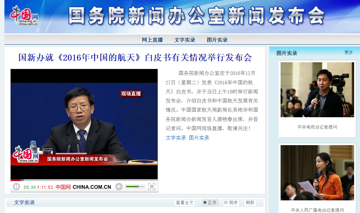 2016-12【2016 中国的航天】国新办就《2016年中国的航天》白皮书有关...