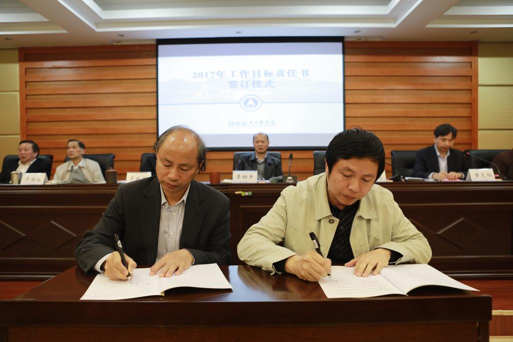 4月11日,学校举行2017年二级单位工作目标责任书签订仪式。校长易忠作重要讲话,会议由党委副书记黄文韬主持,在家校领导出席会议,学校中层领导干部参加会议。会上,易忠强调,目标责任考核是扎实推进学校“二次...