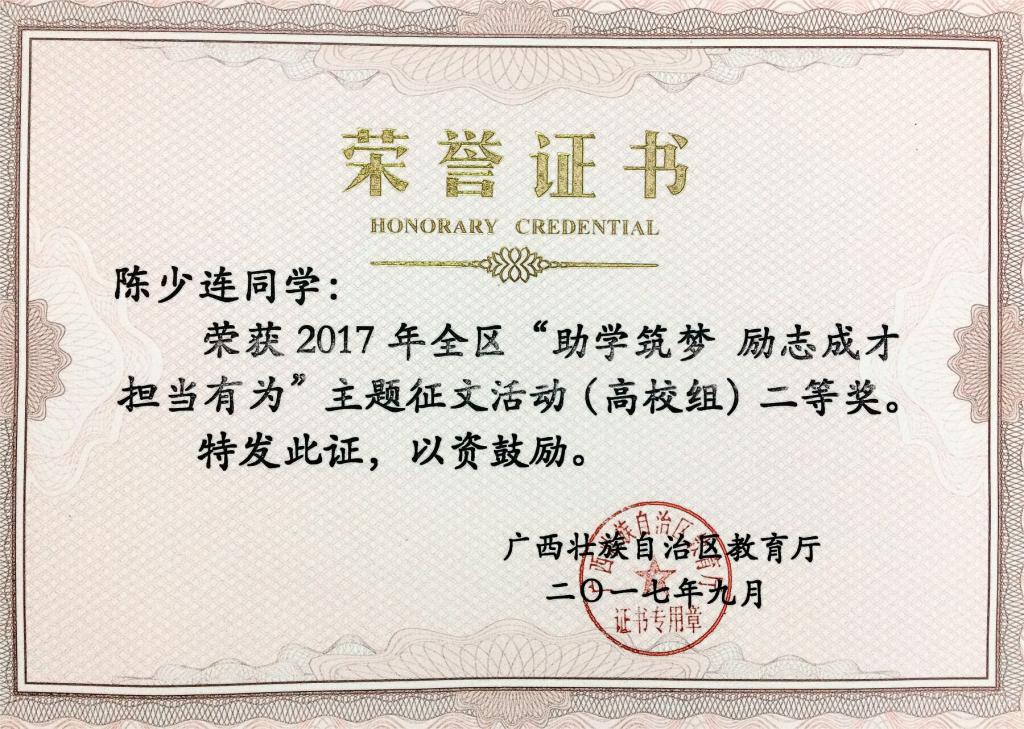 2017-11pp电子学生在全区资助主题征文活动中喜获佳绩