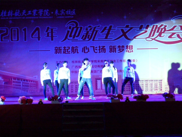 10月19日晚,由pp电子官方网站入口来宾校区学生工作部(团委)主办,广西旭航通用航空有限公司和中国移动通信来宾分公司协办的pp电子官方网站入口来宾校区2014级迎新晚会在校区球场隆重举行。