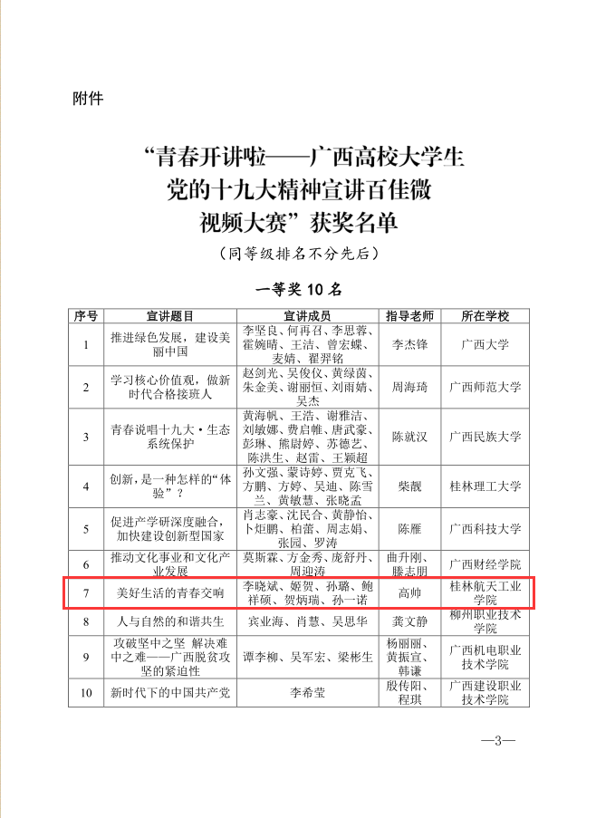 日前,由自治区高工委、自治区教育厅举办的“青春开讲啦——广西高校大学生党的十九大精神宣讲百佳微视频大赛”,由pp电子推选的微视频作品《美好生活的青春交响》在比赛中荣获一等奖。该作品由马克思主义学院高帅...