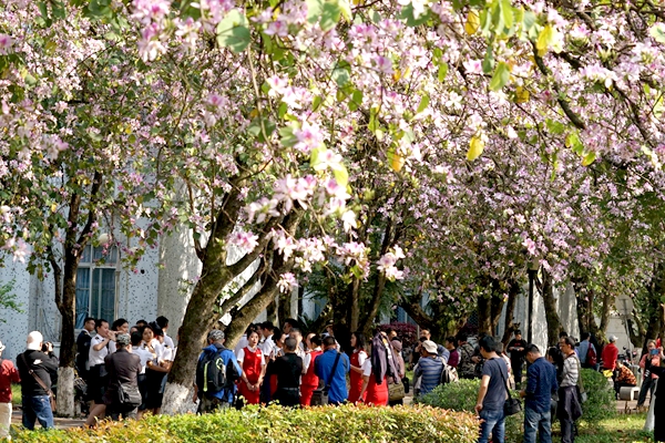 近日,pp电子北校区紫荆大道上繁花盛开,成为校园中一道亮丽的风景线,吸引了众多师生和市民驻足观赏留影。 4月9日下午,航空旅游学院组织桂林市职工摄影协会多位摄影师与空中乘务专业学生共同开展摄影实践活...