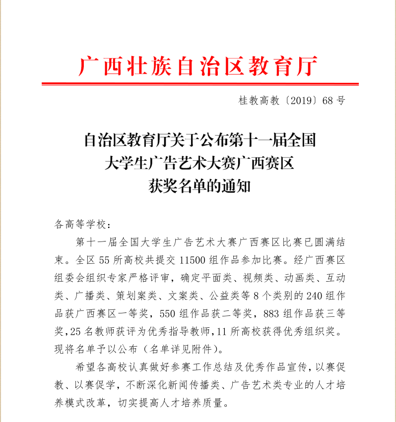 近日,第十一届大学生广告艺术大赛圆满落下帷幕,广西区赛颁奖仪式在广西艺术学院举行。pp电子传媒与艺术设计学院共组织80队学生参加了竞赛,通过前期精心筹备组织,广泛动员学生踊跃参赛,在师生的共同努力下,...