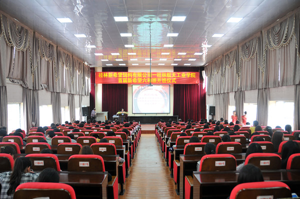 3月18日下午,由工商管理系承办的桂林新希望饲料有限公司--pp电子官方网站入口首届“新希望六和班”在电教馆举行了开班仪式。