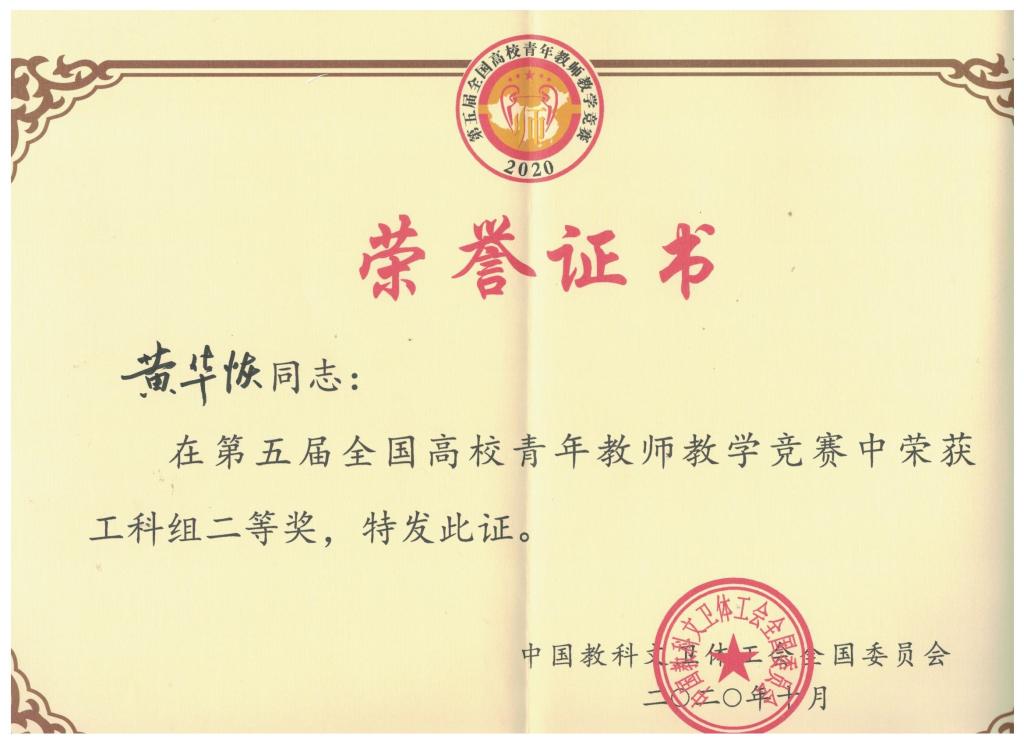 2020-10【喜报】pp电子教师黄华恢在第五届全国高校青年教师教学竞赛决...