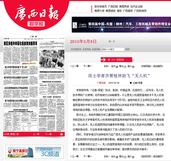 2015-05《广西日报》:院士学者齐聚桂林助飞“无人机”
