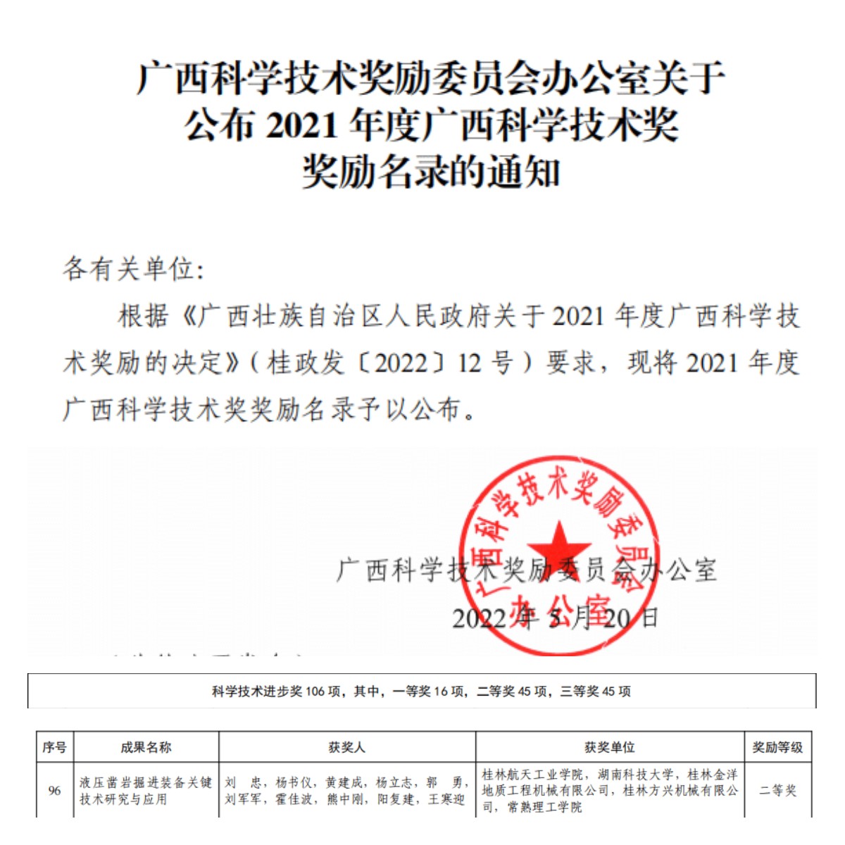 5月23日,2022年广西科学技术奖励大会在南宁举行,表彰 2021 年度广西科学技术奖获奖人员及单位,桂林市设立分会场,pp电子吴尽昭校长出席会议。以pp电子作为第一完成单位、机电工程学院刘忠教授作为第一完成人的科研...