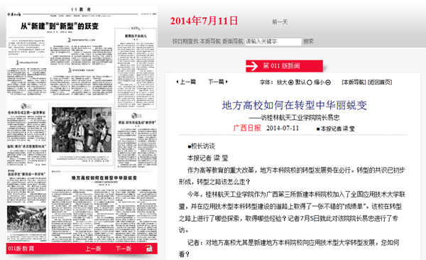 近日,易忠院长接受《广西日报》记者专访,围绕“新建地方本科院校如何向应用技术型大学转型发展”问题回答了相关提问。
