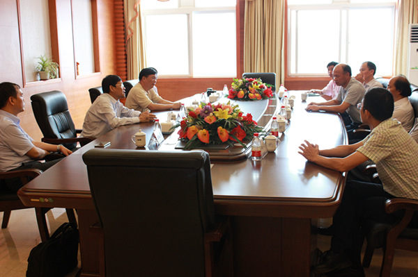 7月4日上午,广西财经学院党委书记王春明,党委副书记、纪委书记黄光云等一行来pp电子作工作交流。