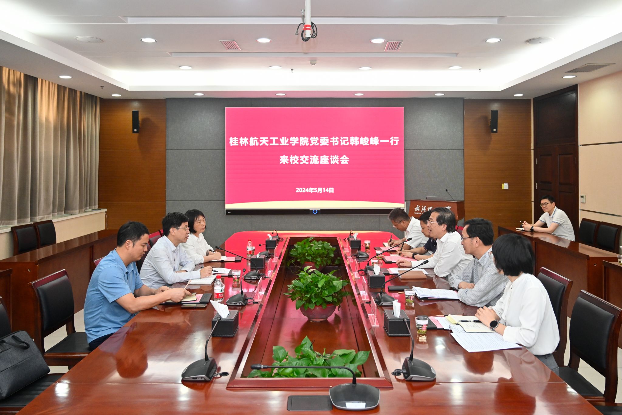 5月14日下午,学校党委书记韩峻峰、副校长葛莉一行赴武汉理工大学进行走访调研,党校办、校友办、学工部相关负责人陪同调研。武汉理工大学党委书记信思金、党委副书记兼组织部部长赵经热情接待了韩峻峰一行。座谈...