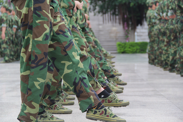 军训就是这样,烈日的残酷折磨,长时间纹丝不动的军姿站定,一边唱歌一边定腿,动不动就被罚做俯卧撑、深蹲,一遍一遍的齐步走、正步走、向左转、向右转,一遍一遍的敬礼、放下、敬礼、放下……似乎永无止尽。