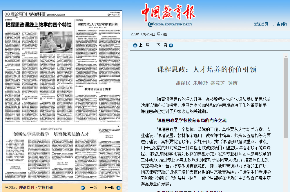 2020-09【中国教育报】课程思政:人才培养的价值引领