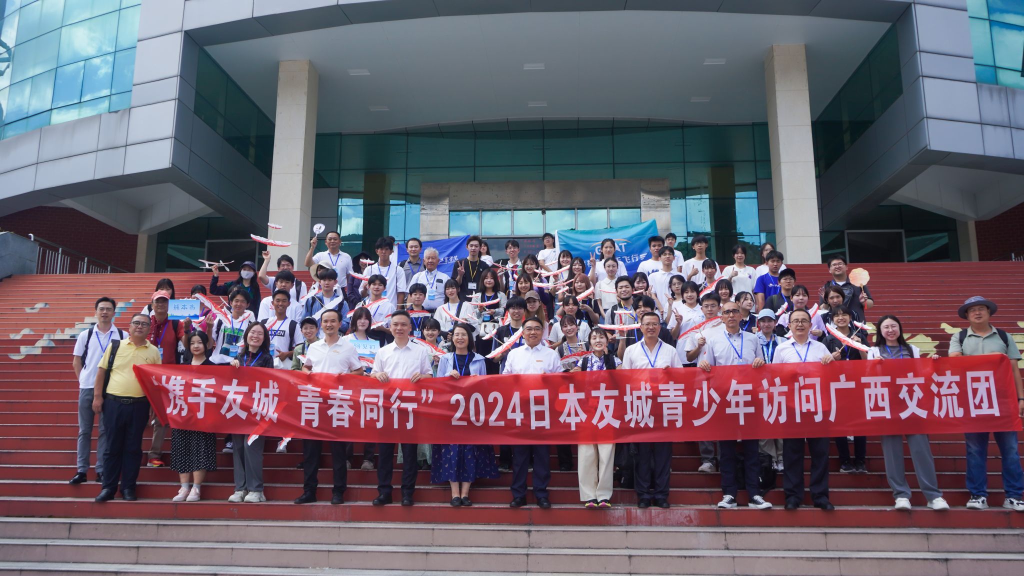 7月22日,2024日本友城青少年访问广西交流团一行来pp电子参观访问,副校长张烈平,自治区人民对外友好协会一级调研员廖红燕,桂林市外事办公室主任文仆,北海市委办公室国际交流科科长谢渝,柳州市外事办公室国际交...