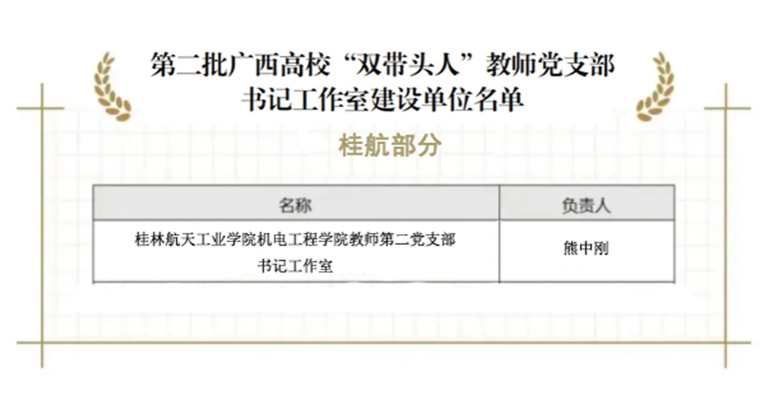 近日,自治区党委教育工委印发《关于公布第二批广西高校“双带头人”教师党支部书记工作室建设单位名单的通知》(桂教工委组〔2024〕46号),共遴选44个“双带头人”教师党支部书记工作室。pp电子机电工程学院教师...