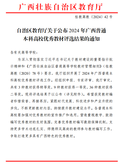 2024-11pp电子教师主编教材获评广西普通本科高校优秀教材