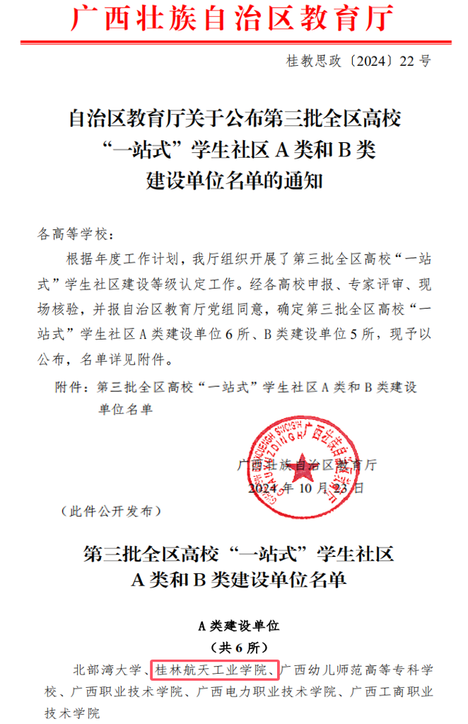 近日,自治区教育厅公布了第三批全区高校“一站式”学生社区建设单位名单,本次共评定A类建设单位6所、B类建设单位5所,学校顺利入选第三批广西高校“一站式”学生社区A类建设单位。一直以来,学校高度重视“一站...