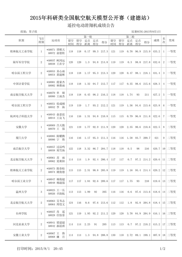 2015-08【喜讯】pp电子学生获得科研类全国航空航天模型公开赛第一名
