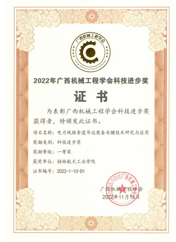 2022-12学校科研成果荣获广西机械工程学会科技进步一等奖