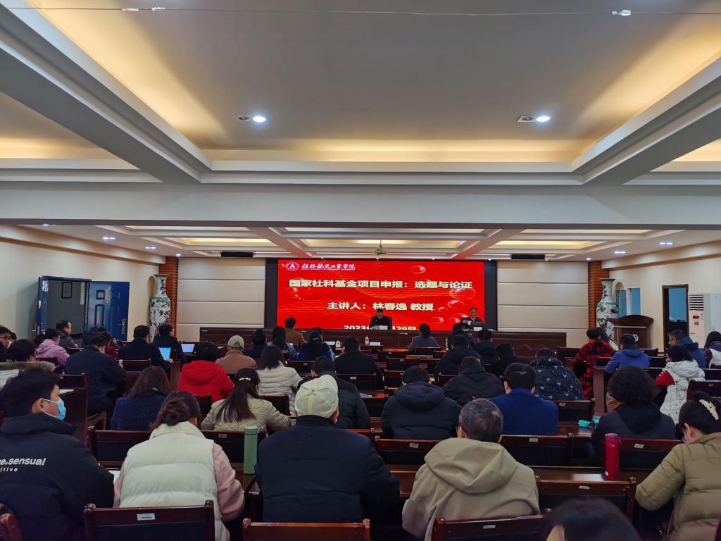2023-12桂林旅游学院校长林春逸教授应邀来校作国家社科基金项目申报...