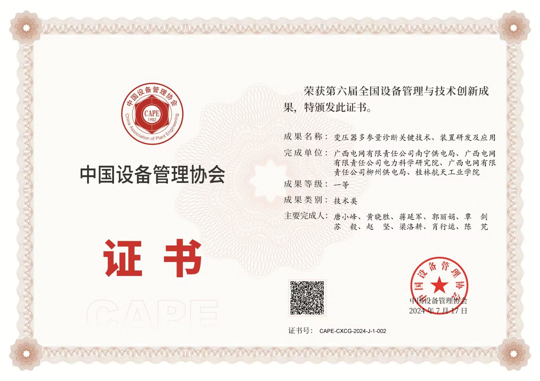 近日,由中国设备管理协会主办的以“深入推进创新实践,加快培育发展新质生产力”为主题的第六届全国设备管理与技术创新成果交流大会在陕西省西安市召开。pp电子储能电池智能传感与控制团队参与完成的项目《变压器...