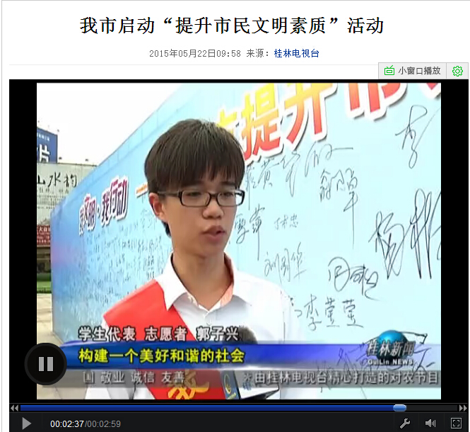 5月21日,我市启动“我文明 我行动”提升市民文明素质活动,近千名志愿者向全市人民发出“争当文明市民、建设美丽桂林”的倡议,号召每个市民从自身做起,自觉提高自身素质,积极参与环境综合整治行动,提升全市...