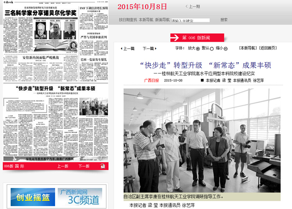 2015-10《广西日报》:“快步走”转型升级 “新常态”成果丰硕