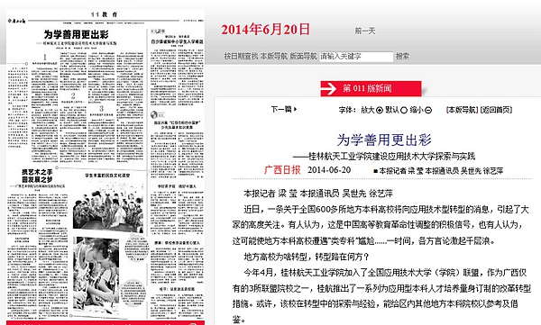 2014-06《广西日报》教育版头条报道pp电子建设应用技术大学探索与实践