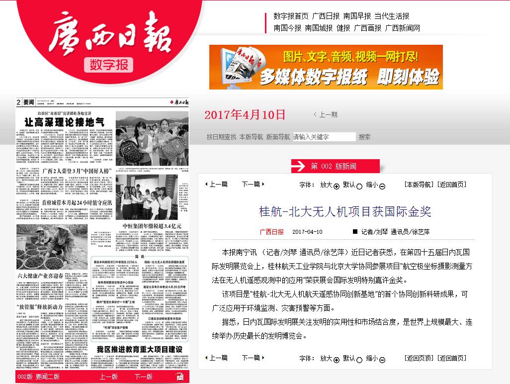 2017-04【广西日报】桂航-北大无人机项目获国际金奖