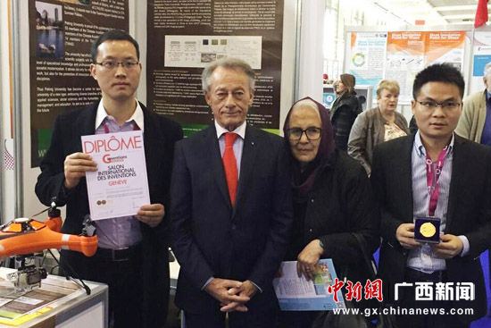 pp电子官方网站入口师生荣获日内瓦发明展特别金奖。图片由桂航提供项目组成员与评委合影。图片由桂航提供广西新闻网桂林4月8日讯(通讯员 徐艺萍)日前,笔者从pp电子官方网站入口获悉,在瑞士日内瓦第45届日内瓦国际...